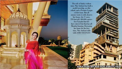 "Đây là lần đầu tiên tôi nói về ngôi nhà của mình," vợ tỷ phú Ambani, bà Nita phát biểu trên tạp chí Vanity Fair.