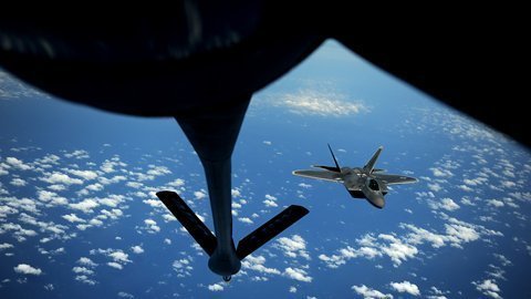 Hình ảnh ghi lại cảnh F-22 nạp nhiên liệu vào ngày 10/5 vừa qua. Chỉ sau đó 1 tuần, chiếc siêu cơ tàng hình thế hệ thứ 5 này của Mỹ đã bị người đứng đầu Lầu Năm Góc Leon Panetta quyết định cấm bay, cho tới chừng nào điều tra nguyên nhân gây nên một số sự cố cho phi công.