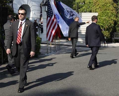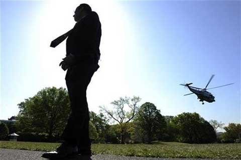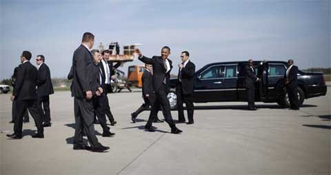 Các nhân viên mật vụ Mỹ ở quanh Tổng thống Obama khi ông vẫy chào đàm đông ở Nhà Trắng hôm 20/4.