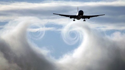Máy bay đi xuyên qua đám mây, tạo nên hình giống trái tim |