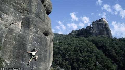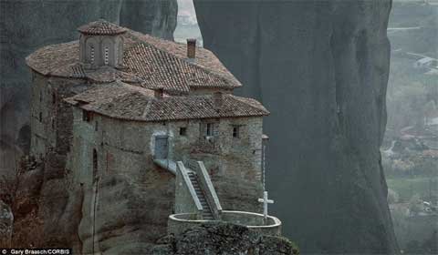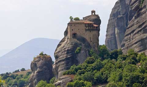 Tu viện Holy của thánh Nicholas Anapausas ở Meteora, Hy Lạp được xây dựng vào thế kỷ 16.