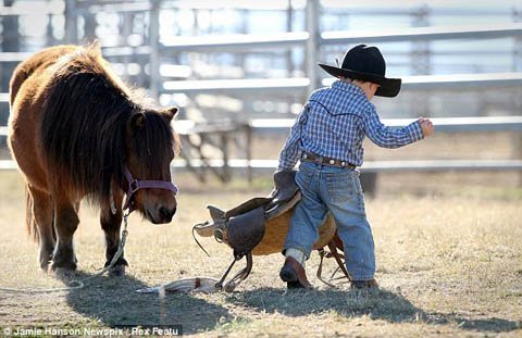 Thay vì nũng nịu trong vòng tay mẹ như những đứa trẻ lên hai khác, cậu bé Royce Gill tới từ Thượng Horton, miền tây New South Wales, Australia lại oai phong ngồi trên lưng chú ngựa Maybelline 6 tuổi của mình.