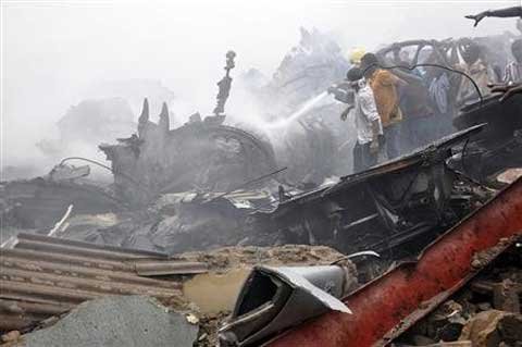 Nhiều người tụ tập tại địa điểm máy bay gặp nạn ở Lagos hôm 3/6. Các nhân viên cứu hỏa đã kéo ra ít nhất một thi thể từ một tòa nhà bị hủy hoại bởi vụ đâm và tìm kiếm người sống sót.