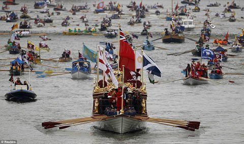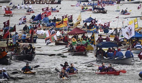 Sông Thames tại London ngập tràn không khí lễ hội vào hôm Chủ nhật, ngày 6/3, khi Nữ hoàng Elizabeth Đệ nhị tiếp tục kỷ niệm lễ Thánh với một đội tàu nhỏ hơn 1.000 chiếc.