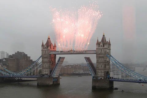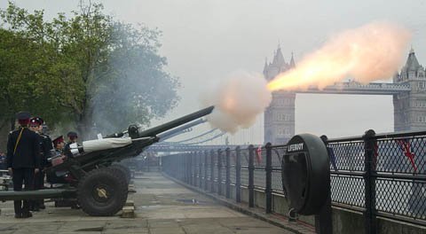41 phát súng đại bác chào mừng đã được bắt lên từ Tháp London để kỷ niệm 60 năm ngày lên ngôi của Nữ hoàng Elizabeth II trong khi hàng ngàn người đứng bên bờ sông Thames reo hò mặc dù thời tiết không được thuận lợi cho lắm.