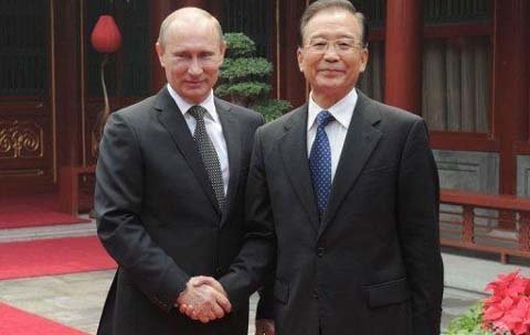 Tổng thống Nga Vladimir Putin (bên trái) cùng với Thủ tướng Trung Quốc Ôn Gia Bảo |