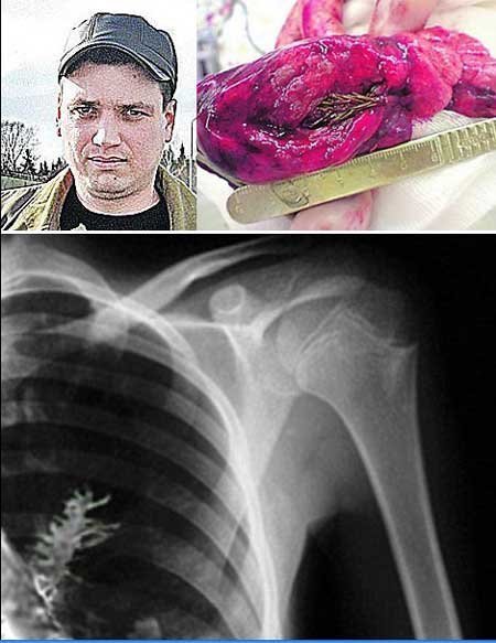 Người đàn ông Nga này phải trải qua một cuộc phẫu thuật để lấy đi một khối ung thư đang phát triển song các bác sĩ phát hiện thấy một cây thông nhỏ đang mọc trong phổi của anh chàng.