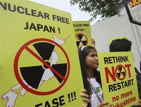 | Các nhà hoạt động Thái Lan phản đối Nhật tái khởi động nhà máy điện hạt nhân. (Ảnh: AP) |
