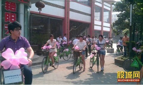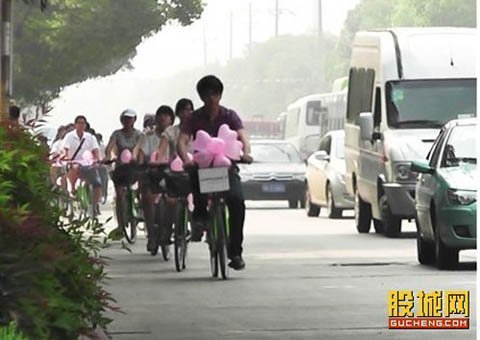 Chị Hồ, một người bán hàng tạp hóa gần đó cho biết, cảnh tượng lúc ấy vô cùng hoành tráng. Đoàn xe đạp được trang trí bóng bay màu hồng nối đuôi nhau kéo tới trước công ty bất động sản. Tới nơi, đội xe đạp xếp thành hình trái tim, chàng trai một tay xách chiếc vali, một tay cầm hoa đợi người yêu xuất hiện.
