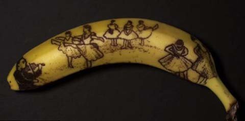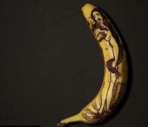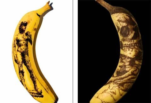 độc đáo trên chuối, thay vì trên da người như nghệ sĩ Nhật.