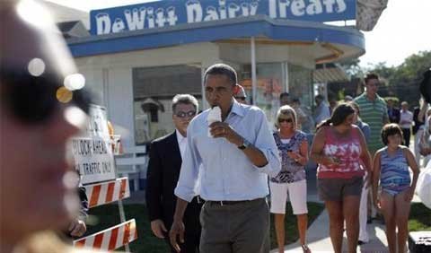 Người đứng đầu nước Mỹ thưởng thức kem mát lạnh ở DeWitt Dairy Treats tại DeWitt, Iowa