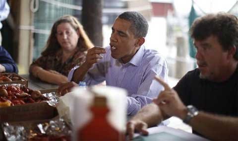 Tổng thống Obama ăn tôm bắt ở địa phương trong cuộc gặp người dân đảo Grand, Louisiana