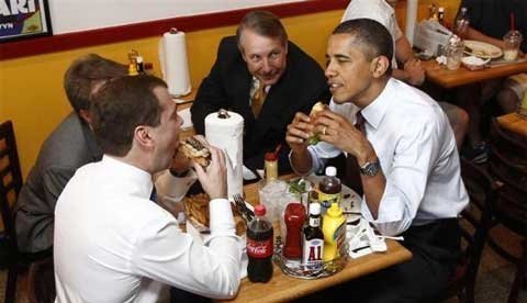 Ngày 24/6/2010, Tổng thống Nga thời đó Dmitry Medvedev và Tổng thống Obama dùng bánh hamburger cho bữa trưa tại nhà hàng Ray's Hell tại Arlington, Virginia