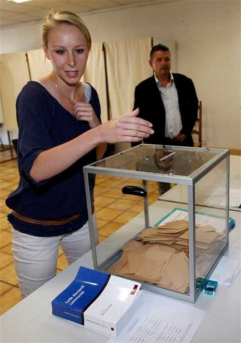 Maréchal-Le Pen, tốt nghiệp luật khoa, đã về đầu ở khu vực bầu cử của cô tại khu Vaucluse, đông nam Pháp với 49,09% phiếu bầu. Ông của Maréchal-Le Pen, người lập đảng chống EU, chống người nhập cư, sẽ tròn 84 tuổi vào tuần này, đã có mặt bên cạnh cô để chúc mừng thắng lợi của cháu gái.