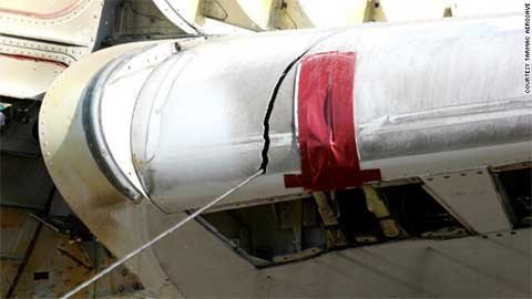 Phần mũi của máy bay được tháo rời, thân máy bay không cánh và buồng lái được