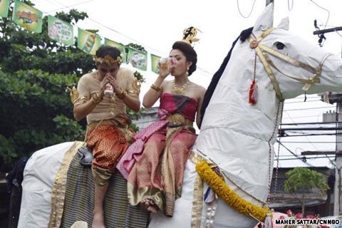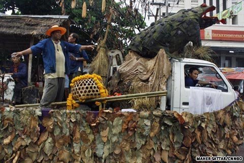 Những con cóc khổng lồ sẽ xuất hiện tại một vài đám rước. Truyền thuyết Bangfai kể rằng Đức Phật, trong hóa thân là vua Cóc, đã đánh bại Ngọc Hoàng để kết thúc đợt hạn hán kéo dài 7 năm, 7 tháng, 7 ngày.