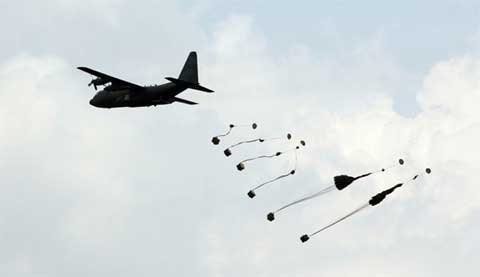 Máy bay chở hàng C-130 của Hàn Quốc thả hàng trong cuộc tập trận