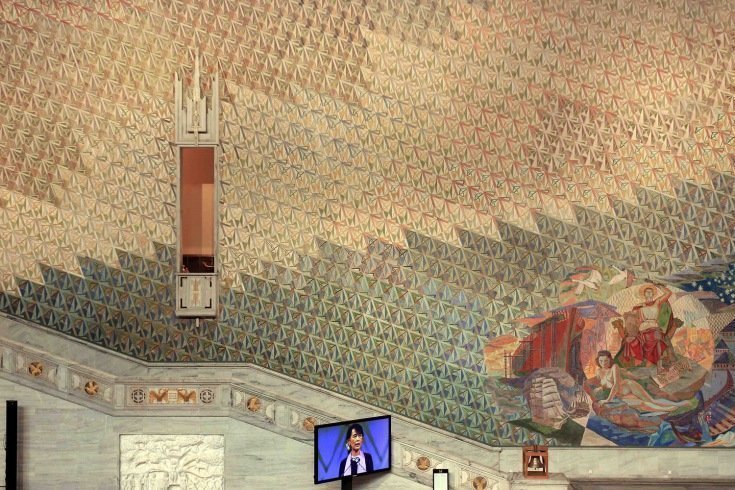 16/6, màn hình TV chiếu giây phút lãnh đạo đối lập Myanmar Aung San Suu Kyi