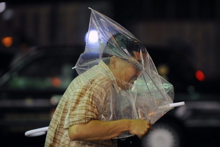 19/6, một người đàn ông vật lộn để giữ chiếc ô trong trận bão Guchol quét qua Tokyo. Ảnh EPA