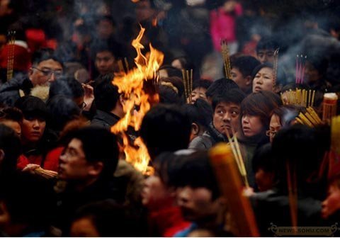 Hàng ngàn người chen chúc tại ngôi đền Yonghegong, Bắc Kinh trong dịp Tết Nguyên Đán.