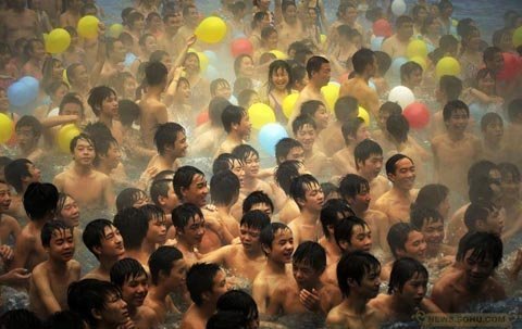 Hàng ngàn người tại Trùng Khánh đang tắm tại suối nước nóng.