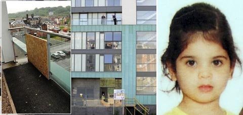 Mẹ của bé Rayaheen Banimuslim , 3 tuổi, đang quan sát con mình chơi trong khu giải trí chung trên tầng 3 của khu chung cư Wicker Riverside khi cô bé rơi xuống bãi gửi xe bên dưới.