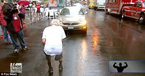 Trong cuộc triển lãm cho tờ New York Times hồi tháng trước, cựu chiến binh 91 tuổi này đã chặn một người đưa thư tới từ Queens, New York. Sau đó, ông dùng sợi xích nối vào chiếc xe đưa thư và từ từ dùng răng kéo chiếc xe lên một ngọn đồi.