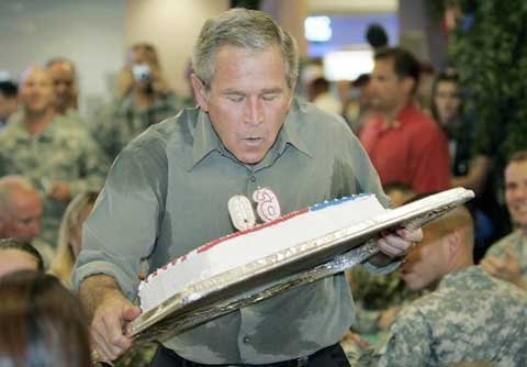 Tổng thống George W. Bush đã mừng sinh nhật lần thứ 60 sớm hai ngày và cùng đón mừng Ngày độc lập tại căn cứ Fort Bragg ở Bắc Carolina vào 2006. Các binh sĩ đã tặng ông Bush một chiếc bánh sinh nhật có thắp nến.