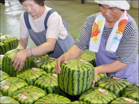 Những nông dân ở thị trấn Zentsuji miền nam Nhật Bản đã tìm ra cách làm thế nào để trồng ra được những quả dưa hấu hình vuông.