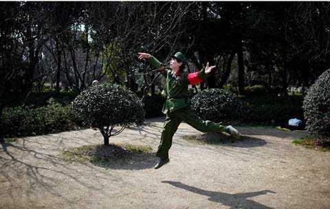 Xiao Cao trong trang phục của Hồng Vệ binh.