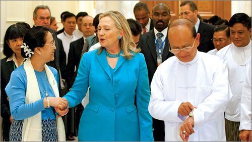 | Ngoại trưởng Mỹ Hillary Clinton trong chuyến thăm Myanmar tháng 12/2011 (Ảnh: Reuters) |