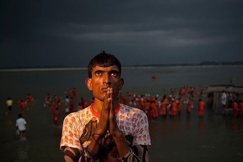 | Một người đàn ông theo đạo Hindu cầu nguyện bên sông Hằng. (Ảnh: Guardian) |