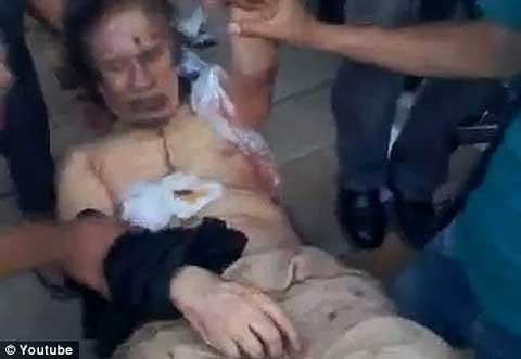Trong đoạn phim gây sốc, được đăng tải trên YouTube hôm qua (16/7), những người biểu tình dường như đã dùng xác của Gaddafi như một con rối biết nói.
