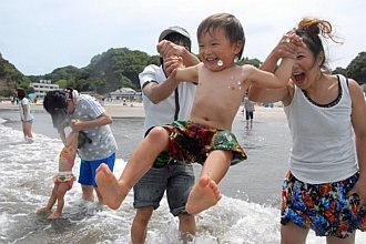 Một gia đình tới tắm biển tại Nakoso.