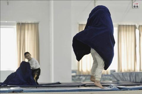 Thành phố Phúc Châu đã cố gắng hết sức để tìm kiếm những đứa trẻ phù hợp với môn thể thao này. Thể chất và ngoại hình là hai yếu tố không thể thiếu. "Chúng tôi thích những đứa trẻ tới từ các gia đình nghèo khó. Chúng sẽ tập luyện chăm chỉ hơn trong điều kiện huấn luyện khắc nghiệt," một huấn luyện viên cho biết. Có khoảng 30 đứa trẻ từ 5-16 tuổi đang được đào tạo theo môn bật nhún trên lò xo tại ngôi trường này. Hầu hết chúng đều tới từ những gia đình bình thường.