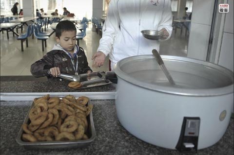 Nhà trường cấp cho mỗi học sinh 25 NDT (3,92 USD) hỗ trợ ăn uống mỗi ngày. Bọn trẻ có thể uống sữa vào buổi sáng và ăn sữa chua vào buổi tối. Nhưng những món chính trong bữa ăn ít khi thay đổi. Một vài bé gái thậm chí còn phải ăn kiêng để giữ dáng.