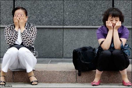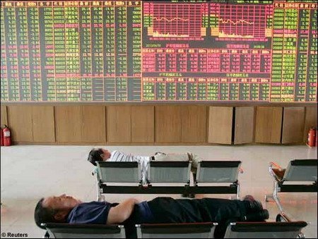Các nhà đầu tư ngủ ngay tại sàn giao dịch chứng khoán ở Thiểm Tây.