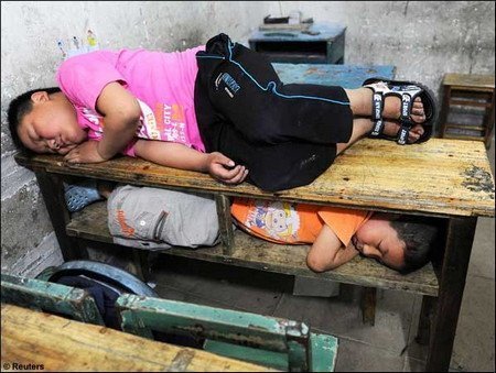 Hai bà mẹ tranh thủ ngủ trong lúc chờ con thi đại học ở Bắc Kinh.