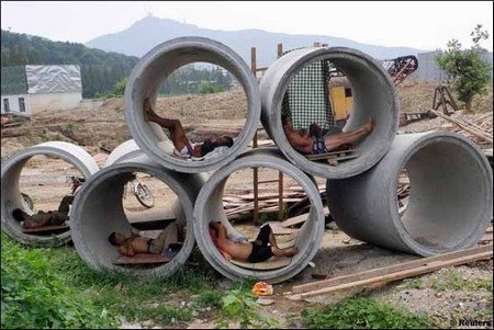 Mỗi ống xi măng là nơi ngả lưng của một người công nhân.