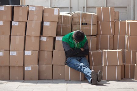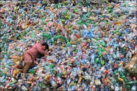 Người lao động ngủ trên những chiếc chai phế liệu tại Jiaxing, Chiết Giang.