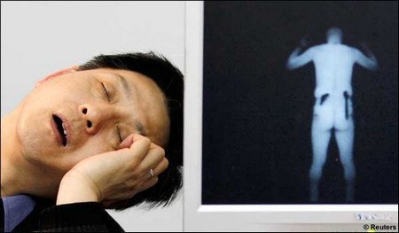Một người bán hàng ngủ gật tại gian hàng triển lãm thiết bị cảnh sát ở Bắc Kinh.