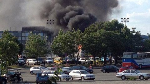 | Cảnh khói đen bốc lên từ chiếc xe phát nổ gần sây bay Burgas |