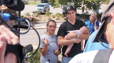 Một cặp vợ chồng trẻ vừa mới chuyển từ New Mexico tới và có mặt tại rạp chiếu phim Aurora, Colorado trong buổi công chiếu bộ phim "The Dark Knight Rises" cùng với các con của mình cho biết họ được xếp ngồi hàng đầu ngay lối ra, nơi một tay súng bước vào và giết chết ít nhất 12 người.