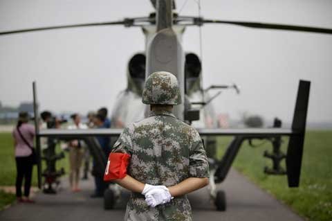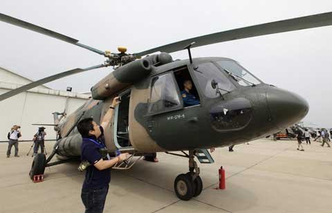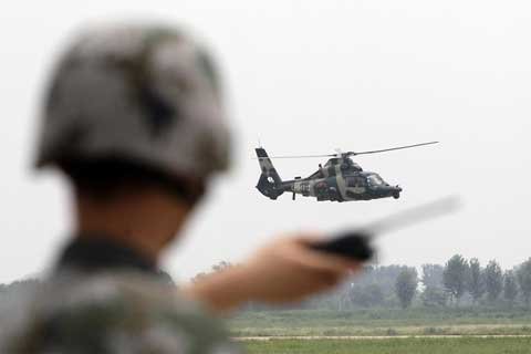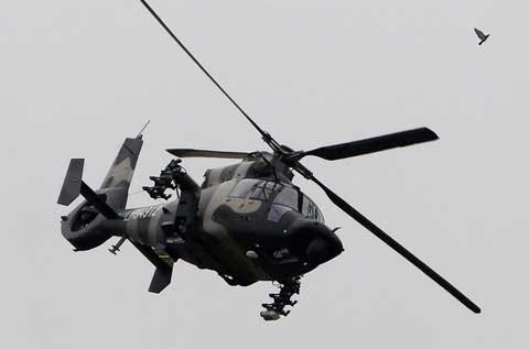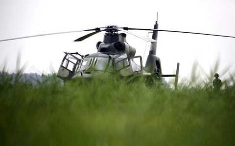 Trong chuyến thăm, các nhà báo được chứng kiến màn bay lượn của trực thăng quân sự Z-9WZ do Trung Quốc thiết kế và sản xuất.