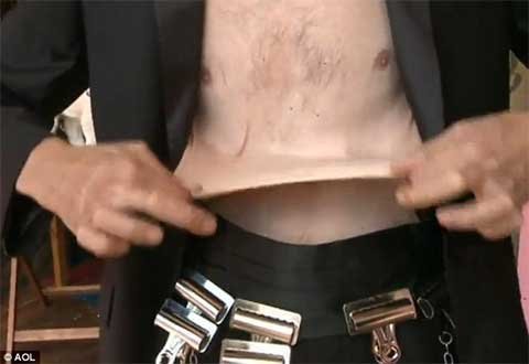chùng tới mức có thể dùng bụng để đặt 3 cốc bia nói. Gary là người kéo căng da