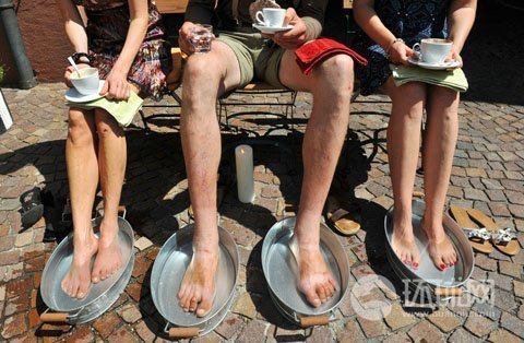 Vừa ngâm chân trong nước mát, vừa thưởng thức cà phê.