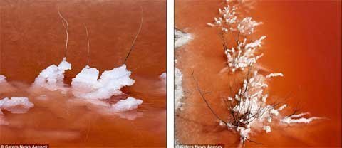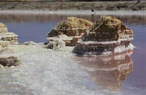 Lượng muối cao khiến nước hồ chuyển từ xanh sang đỏ