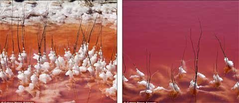 biết, nước hồ chuyển màu xanh sang đỏ là do lượng muối cao trong nước.