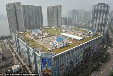 Trong lúc đất đai trở nên khan hiếm, đắt đỏ, một số cư dân ở tỉnh Hồ Nam, Trung Quốc đã quyết định xây dựng những căn hộ sang trọng trên nóc một trung tâm mua sắm.