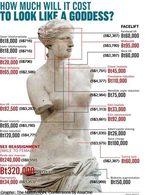 Một khảo sát gần đây cho thấy giá trị thị trường của kinh doanh phẫu thuật thẩm mỹ đã tăng từ 15 tỷ bạt Thái (476 triệu USD) trong năm 2010 lên tới 20 tỷ bạt (636 triệu USD) trong năm 2011. Và trong năm nay, giá trị của ngành công nghiệp này hy vọng sẽ tăng thêm 20%.